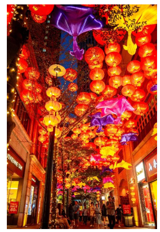Một trong những nét đẹp không thể thiếu của lễ hội chính là treo đèn lồng (挂灯笼, guà dēnglóng).