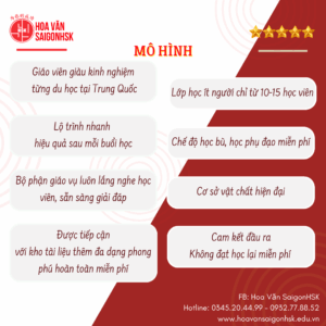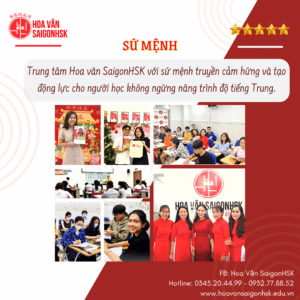 Với phương châm hoạt động “为你的成功 – Vì sự thành công của bạn”, SaigonHSK luôn muốn mang đến cho người học Sài Gòn một môi trường học tập và rèn luyện sáng tạo, bổ ích giúp người học lấy lại cảm hứng cho việc học tiếng Trung và nhanh chóng đạt đến trình độ mình mong muốn. Cam kết đầu ra, được học lại miễn phí nếu học viên không đạt được kết quả như cam kết.