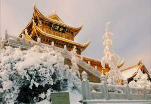 Dưới chân núi là chùa Baoguo, được xây dựng vào thế kỷ thứ 16 nơi lưu trữ các kinh điển Phật Giáo. Nằm cao nhất là chùa Phật vàng với những bức tượng phật được làm bằng vàng nằm ở vị trí cao nhất thế giới nặng tới 660 tấn.