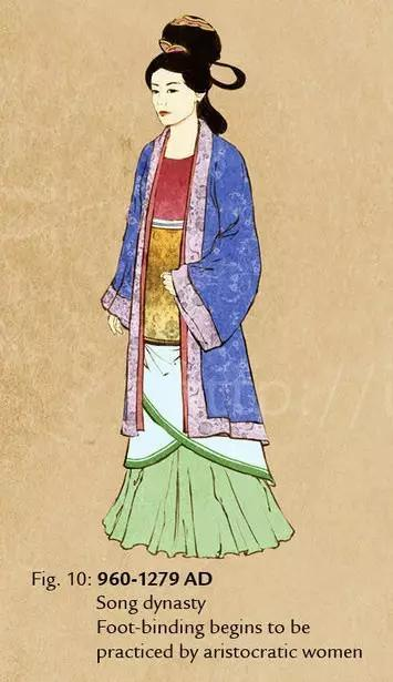 Trang phục nhà Tống được đánh giá là khá sang trọng, ngay cả trang phục của thường dân. Trang phục nữ thời Tống thường là bên trên mặc áo ngắn, ống tay bó, bên dưới mặc váy dài và thường khoác bên ngoài áo khác dài có hai vạt đối xứng.
